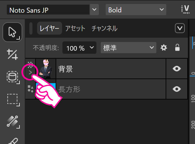 どうなっているのかを確認するには、画像レイヤーの▶をクリックします。