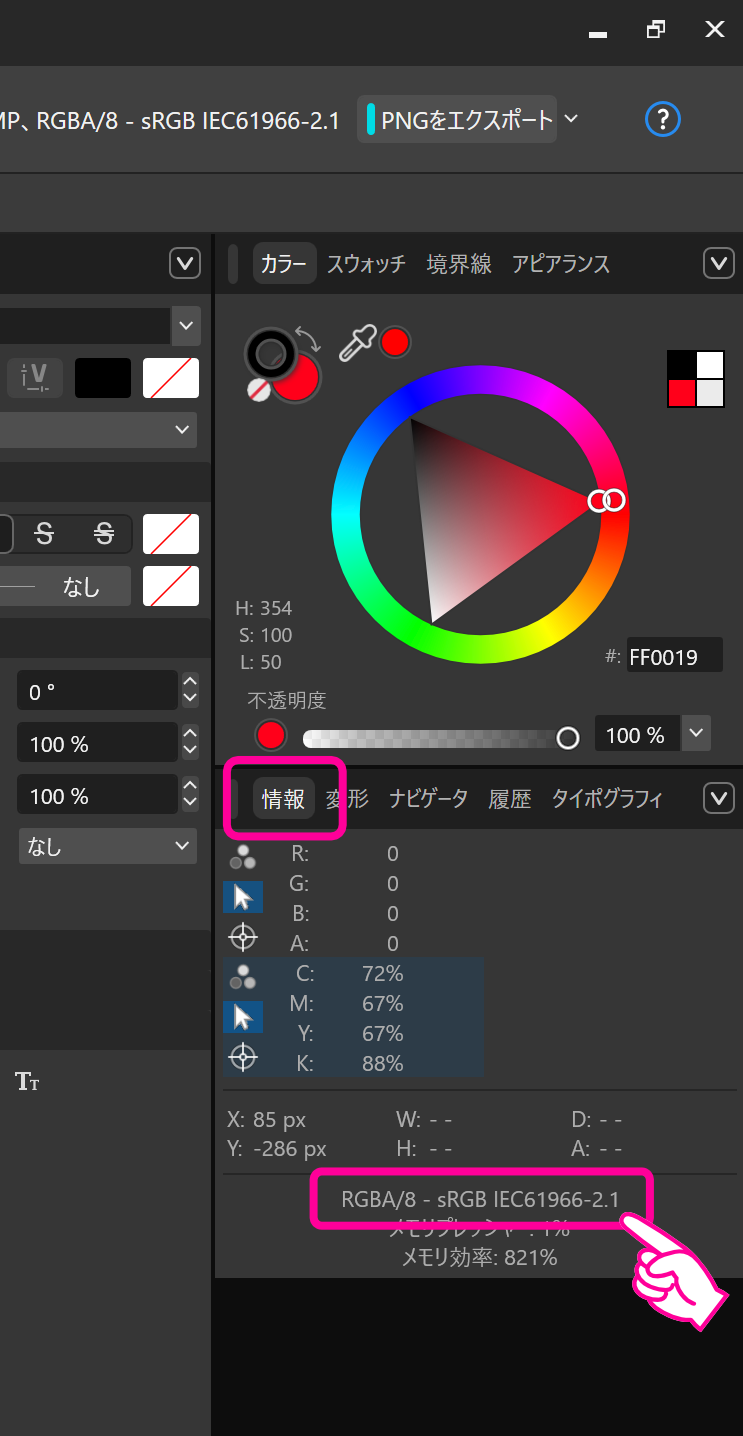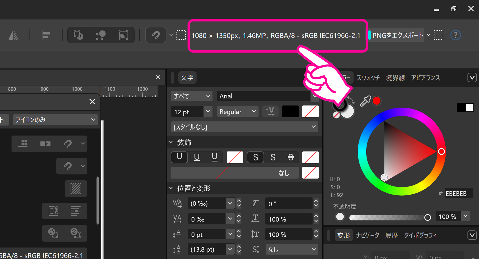 ※「カラーモード」はAffinityでは「カラーフォーマット」のことです。