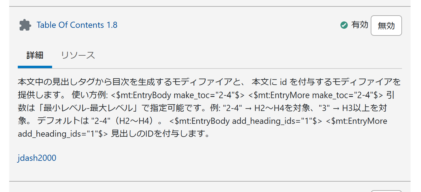このブログは現在Movable Typeで作成されています。目次表示にはjQueryを使った「jQuery.toc.js」ライブラリを利用していて、特に運用上問題や不便はありませんでした。
