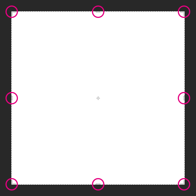 すると、こんな形で上下左右中央にハンドルが表示されます。