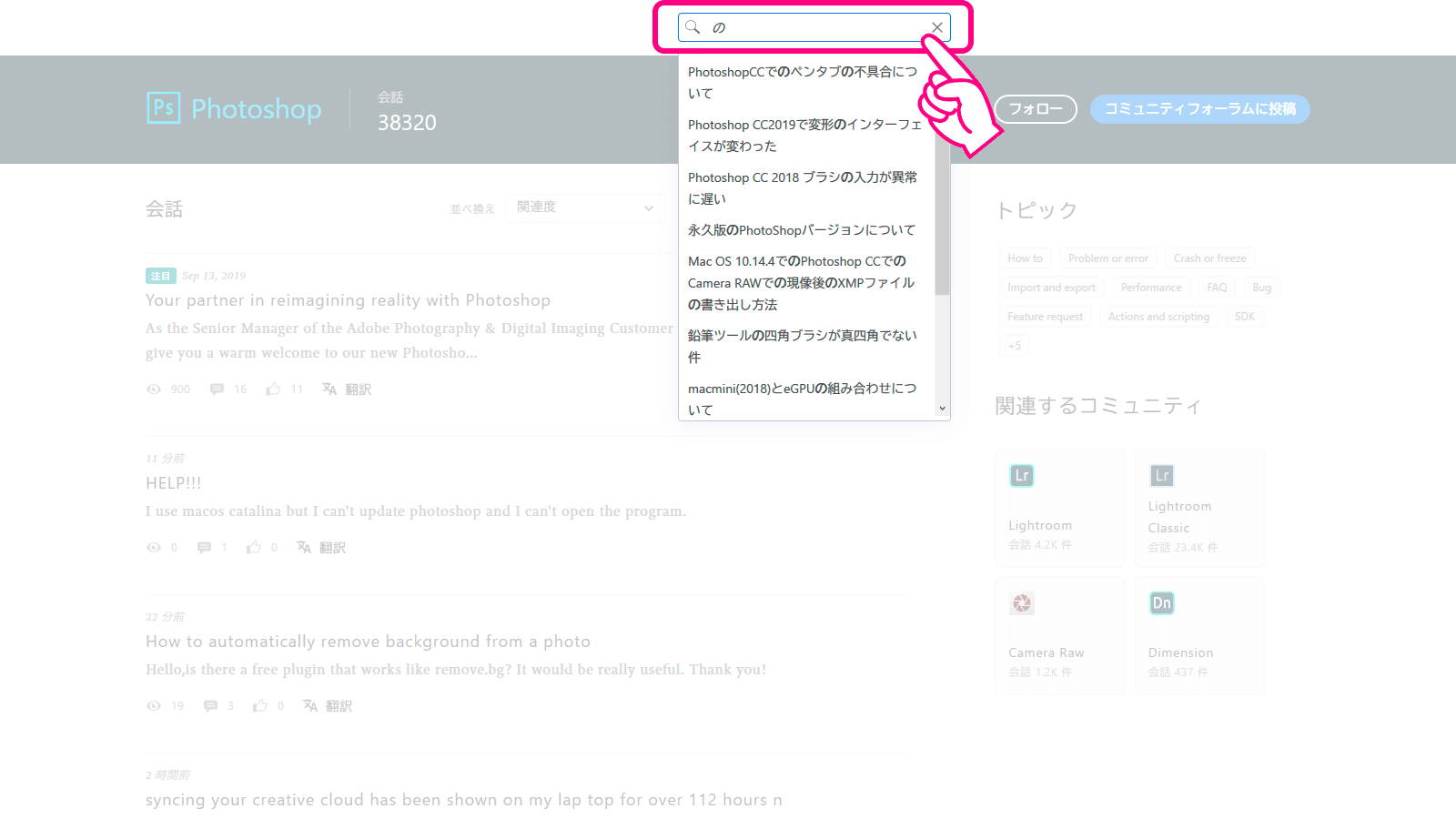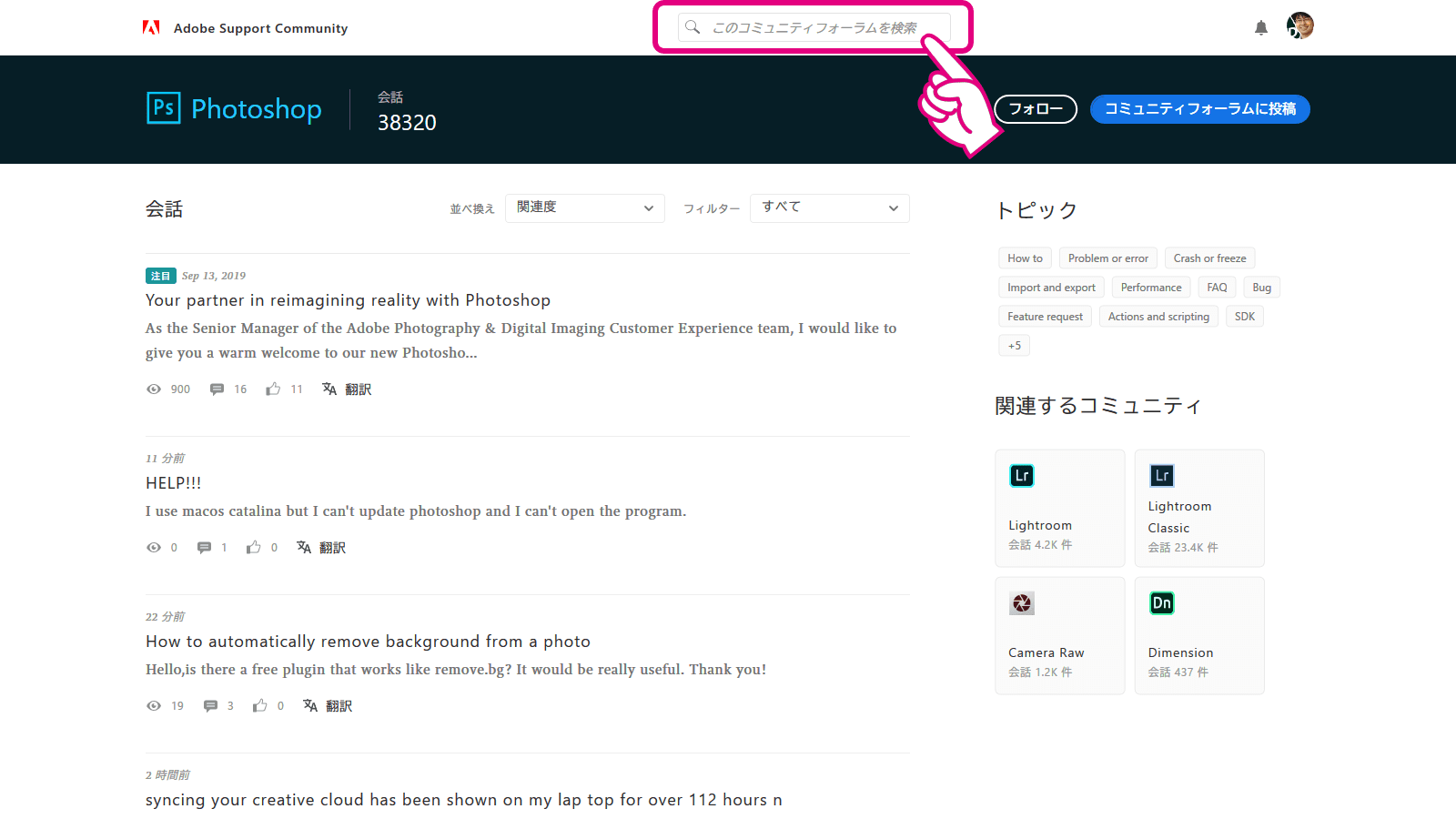 まず、Adobe Forumsであった「日本語」だけのトピックがなくなり全世界共通になってしまい、ほとんどの投稿が英語。