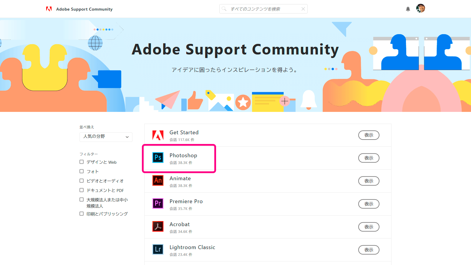 - 新Adobe Communityの利用方法簡易めも〔トップページ編〕(実験る~む)