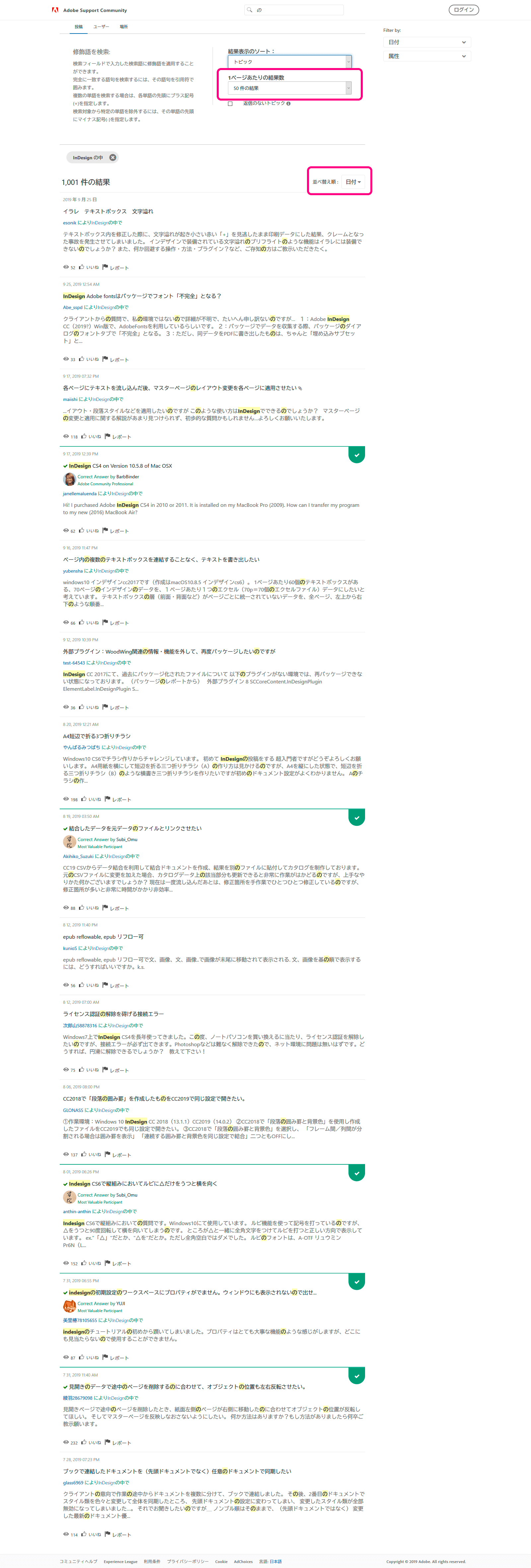 ということで、Adobe Support Communityに日本語で投稿された最新のスレッド一覧(多めに表示)は以下の通りです。